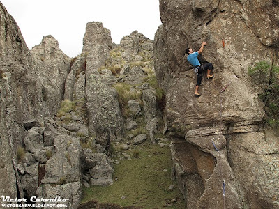 Depois de passar o crux da via "Los Chivitos", F6b.